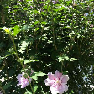 江川せせらぎ遊歩道 ムクゲ‘大徳寺白’が咲き始めました😊