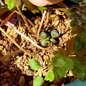 いつものように買い物から帰ってきてポストを開けるときにプランターを蹴らないよう足元を見たらハゲハゲのアトランティスのプランターにピンク色のつぶつぶが見えるような…🧐 メガネ(老眼鏡)を掛けても見えないから携帯カメラでズームしました🔍😅 ちっちゃなピンク色のおこちゃま発見🤩 昨日一日中雨☔だったからまたジュレないか心配してたけど朝から真夏のような日差しがあたって季節を間違えたのかな🙄 元気に育ってね🥰