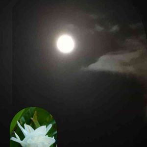 昨日のお月様です 前の日より丸かった🌕 今年は まだ蕾なので 去年のジンジャーリリーと🌱
