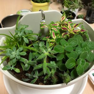アイビーやネックレス系のものと、ペペロミアちゃんたちを寄せ植えしてみました。 DAISOの吊るすタイプ🍀 冬場に室内に置けるようにスタンドも準備しました。 1日どこにも行かず、楽しみました〜😆