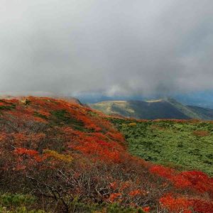 栗駒山山頂🍁 秋田の紅葉が始まって来ました 先日友に誘われ初体験山登り 素敵な景色に出会いました💕💕 雲の流れの合間から この山頂へ行く事が出来ました✌下山後待望の♨へ最高♡🤗🎶🎶🎶💕 帰ったら階段下りるのにふくらはぎが悲鳴を(笑)