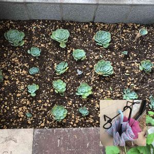 頂きました七福神さんの植え替え準備をしました✨ ハサミ✂️いれたので乾燥させた方が良いらしいので乾燥中( ˊᵕˋ ) はたして、どの位乾燥させたらいいのか? (;´д`) ルートン塗って挿すのは駄目なのか? (;´д`) 初体験なので全く分からん(つ﹏<)・゚。