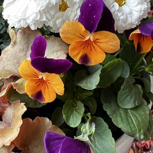 ますます可愛くなってきたよ(๑・̑◡・̑๑)🎶 「おっはよう、行ってくるね」が最近の日課😆 白いマーガレットにこのビオラ🧡💜 メープル色のヒューンさんをプラスしたから、落ち着きのある色合いで好き👍