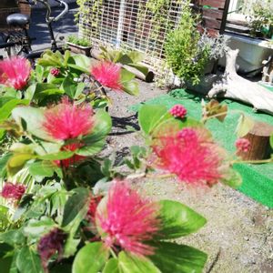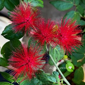 ヒメベニゴウカン(学名: Calliandra emarginata Benth 英名: Miniture Powder-puff、Small Red Powderpuff Shrub 和名: 姫紅合歓)の花🌺🌿🌸 ヒメベニゴウカンは、四季咲きネムノキ(丸葉・高麗ネム)と言い、ネムノキの仲間で熱帯性の四季咲き品種です。 ヒメベニゴウカンは、化粧用のパフに似ていることから英名でパウダーパフと呼ばれている愛くるしい花です。 開花期の最中には、真っ赤な可愛らしいつぼみを次々つけて、赤い刷毛のような花をたくさん咲かせてくれます。 可愛らしい四季咲きの花は、一年中楽しませてくれそうです。🌺💕🌿 素敵な可愛らしい真っ赤なパフパフの花をお楽しみください。🌺🌿🌸