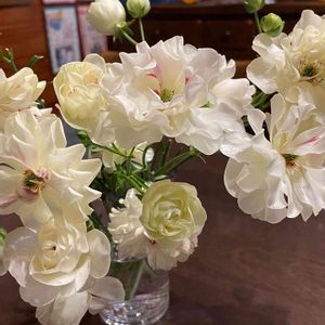ラナンキュラスラックス ニノスを切り花にして飾りました😃 ツヤツヤの白花の中心のとこが、ほんのり赤いニノスを間近に見れてうれしいです💕 花は出来るだけ根をつけた状態で育てたい派なので、このラックスも、もう少し頑張って欲しいなと思ってましたが、1月はじめから咲いていたので4月に入り葉が黄色くなりはじめました😢 球根のために花を切りました✂️という投稿を読ませてもらって、私も即実践✂️しました😁 後から咲きだしたラックスたちは、まだまだ楽しみます😁