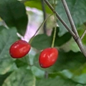 里山を歩いてみれば… 色んな果実がありました♪ ツリバナ(吊花) サルトリイバラ(猿取茨) サンザシ(山査子) オトコヨウゾメ(男莢蒾) ガマズミ(莢蒾) ⚫︎⚪︎⚪︎⚪︎⚪︎