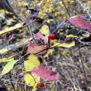 丘陵地にて なんか渋い紅葉の木がありました。 何かな〜 よく分からず、割と近くに小ぶりの木が何本かあり、 赤い実が残っているのがありました。 この実はオトコヨウゾメなのか? 今まで見てたのこんな色じゃなかったな〜? かしさんにオトコヨウゾメと教えて頂きました。 霞丘陵