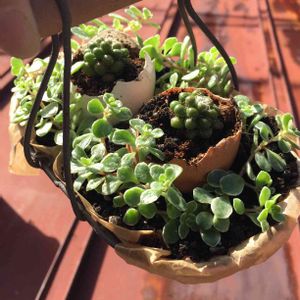 久しぶりのお天気がいいお休み! 卵の殻を使って寄せてみましたよー。 セダムさん、大きくなってね〜。 茶傘さん、このままでお願いします笑