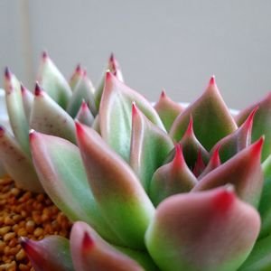 昨日、お水あげたのでちょっと広がり気味😓 外葉が黄色?っぽくなってきました。 直射ではなく軒下の明るいところに置いてます。 風もよく吹いて気持ちがいい場所。 ジュレって無さそうだし… これが夏顔なのか、それとも葉焼けなのか分かりません。(誰か教えてーー😭) お水切らすと外葉が消えていくし、与えすぎるとスカートになりそうだし…うーーん、難しい!
