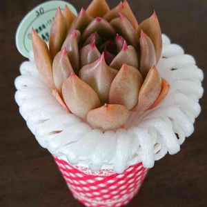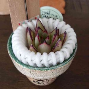 【 ピンクドラゴン 】 ちょっと開き気味みたいだけど、これからの変化に期待。 ちょび根っこ出てるからもう少しで植えられそう。 大きめだから安心😃 *** 外の多肉棚は ビニールシート+ぷちぷち で冷気遮断してます。 幸い、今までの最低気温は3℃程度でした。 今晩は降ってる雨が雪に変わるかもしれないので、断熱シートも買ってきました。 マンションベランダの構造上、降り込むことはまずないんだけど、寒そうだから。