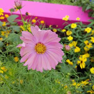 おはようございます☀ 藤井風さんのライブも兼ねて何年ぶりかの大阪旅行に行ってきました。 帰ってきたら、7月のはじめに種まきした コスモスのキャンパスシリーズが咲いていました🌸 (早くまきすぎて咲くまで長かった〜) キャンパスオレンジは、アプリコットというかサーモンピンクというか、素敵な色。 キャンパスイエローは、クリーム色やレモン色など幅のある花色でかわいいです。 左側のピンクはポップソックスです。 美味しいのか、よく虫にかじられています。 晩生種も咲いて、いよいよ秋も深まってきました🍁