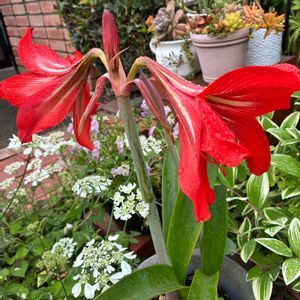 アマリリスの花が咲きました。 ①〜③ アマリリス蕾もあります。