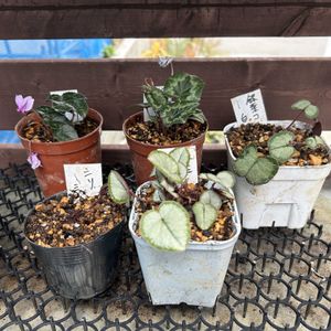 シクラメン 1枚目 ドラゴン 2枚目 原種ヘデリフォリウムこんなに小さいシクラメンがあるんですね 3枚目 ブルー 4枚目 フェアリーピコ 5枚目 寄せ植え