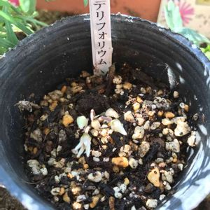ヘデリフォリウム 秋咲きの原種シクラメンです 先日やっと芽が伸びてきたなあと思ったら花芽ではなく葉でした🌱🤔 予定では初秋に花が立ち上がり遅れて葉が展開するはずなのに🌱🌱 もしかして今年はお花が咲かないとか?!