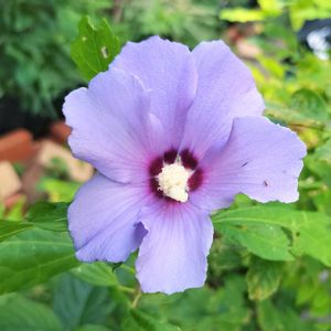 🌱ムクゲ(木槿)🌱 ローズオブシャロン(青いシフォン) アオイ科 フヨウ属 アメリカで育種された品種で耐寒性、耐夏性の強い矮性品種。 これから秋近くまで長期間楽しませてくれる大好きな色のムクゲです。 実際の色はもう少し青み掛かっています。 わが家の庭にて 2023年6月11日撮影です。