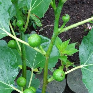 我が家のミニイチジク 草丈は50cm位です。場所を取らなくても よく、美味しい実が成ります。 今年は枝を切ってからなので秋果だけですが、前年枝を残すと夏果も取れます。