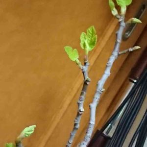 そんなに焦らないでよ‥🙄💭 あと一ヶ月はのんびりしててよね😁💨💨 (背景失礼😅💦) 柔らかそうで 美味しそうな新芽🌱(笑)