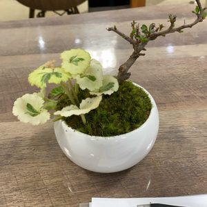 2022.5 盆栽教室体験 初めてのミニ盆栽 長寿梅、斑入りユキノシタ