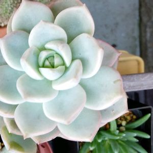 白牡丹🌼 ぷくぷくしています😳 外に置いた多肉ゾーン 大きくなって 存在感が増してきました 季節の花と一緒に 寄せ植えも 試してみたいです💞