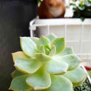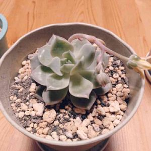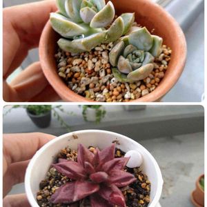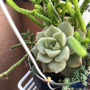 フリマで多肉の寄植えを買いましたが、真ん中のエケベリアっぽい多肉の名前が分かりません… わかる方いたら教えて下さい!🙏