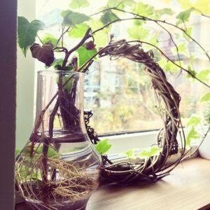 お庭で伸びすぎちゃったアイビーを水耕栽培してます^ ^