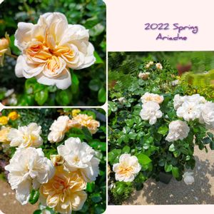 大概ぶちゃいくな表情のアリアドネ😅 咲き始めは端正な姿なんですけどね💦 でもいっぱい咲くので、ぶちゃいくでも良いのです✨ ある日、アプローチにどこからか芳醇なピーチの香りが立ち込めていて、嗅ぎ回ってみつけた香りの主がこのバラでした🍑 以来、アリアドネの香りのトリコに😆 私は鼻が効かないので香りには全く興味がなかったんです ロサオリの情報では「ティ」「中香」との事ですが、ピーチの香りはその時だけで、バラらしい香りの日もあれば香らない日もあり、日替わりなんです。 他のバラも同じなのかな? バラの香りを普段から嗅ぎ回ってないので何とも言えませんが、、、