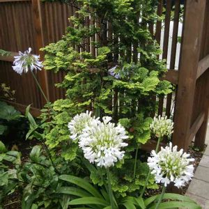 手前が白、奥が紫のアガパンサス。この対比が気に入ってます。