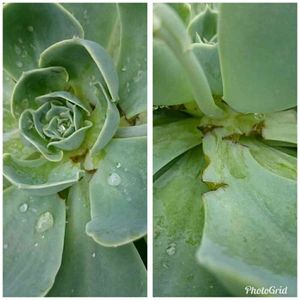 あら…(*_*) 長雨の後に七福神がビリビリ。 柔らかい部分が裂けちゃっています…これもお水の吸いすぎ、キャパオーバーでしょうか?? この前は花うららがプチンと破裂したし、やっぱり雨ざらしのせいですよねえ…。 (それでも雨ざらし続行👊)