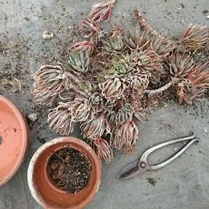 ギュウギュウを見ているのがイヤ😣になりカット!✂✨ 着地して根を張ってる子株は取り敢えずそのままに。(面倒だから…) あとの子達はどっかに植えないと💦