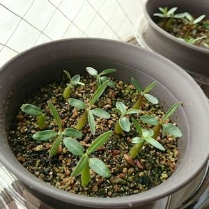 いつの間にか6月!! もう夏じゃないですか(>_<) 5月は急激な暑さに大分植物達がやられました…短い春に根が張り切れなかった挿し芽の子達が次々★に…😢 そんな中で唯一スクスクしてるのがグラキリスの赤ちゃん! GWに蒔種して1ヶ月、本葉も出揃いました🌱✨ 20粒中18粒発芽、発芽率の良さに嬉しいやら困るやら…そろそろ植え替え時かなあ。。