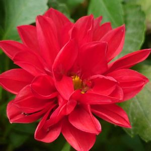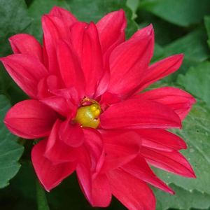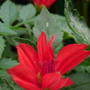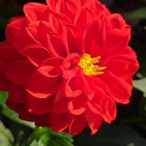 ダリヤ キク科ダリヤ属 多年草 赤い花びら が開花 日差しを浴びて 輝いています🤩
