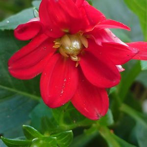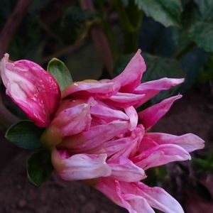 ダリヤ キク科 ダリヤ属 大雨の中☔ 傷つきながら 蕾が開き始めた けなげな花びら が愛おしいです🤗