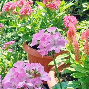 ギャザリング寄せ植え 春のを解体してヘミジギアとプラチーナが 使えそうで一緒にギャザリました。 ペンタス 千日紅 トレニアカタリーナ 左の葉が邪魔してます😉