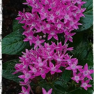 ペンタス💗 雨の中、☔ 咲いています❗ ちょっと風🌀が出てきました❗