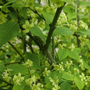 春に白い(グリーン)花を咲かせ グリーンの実ができました 新芽が伸びて立派な 枝になっていました にしきぎ 錦木 ニシキギ