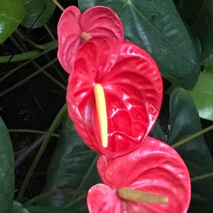 熱帯生態館で撮った、鮮やかなお花(^-^) アンスリウムかな? そこには、蝶や華やかな色の鳥もいました