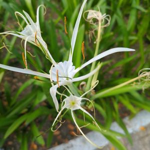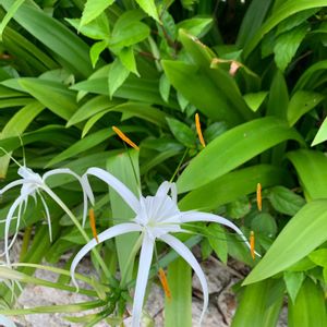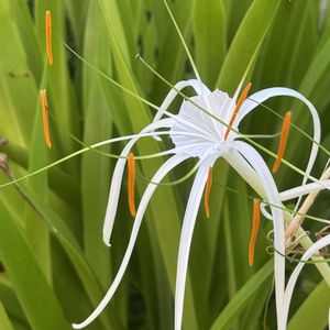 スパイダーリリー 先月の糸満市-名城ビーチにて スパイダーリリーが満開していまし た。スパイダーリリーの花は中央が 朝顔のような白い形状をし、その周 りから6本の細長い花弁が伸びるの が蜘蛛のようなのでスパイダーリリ ーなんですね〜。(*´-`)❣️