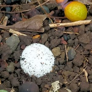 カニノツメという きのこ 右側の白いのが卵です 卵から カニノツメが 出てくるところを 見てみたい