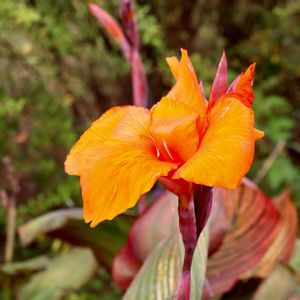 カンナ (カンナ科) 中南米原産 ヨーロッパで改良され、多様な品種があるそうで。 熱帯原産の植物で、暑ければ暑いほど生育が良くなるとか…そのパワー、来年の夏にでも少し分けていただきたいものです! 今日のお花に参加します🧡❤️💚 今月8日 平塚花菜ガーデンにて撮影📷