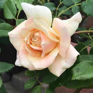 雨で寒い中、健気に咲いております🌹 夏バテで花弁が少ないけど、秋色の バラも素敵です✨✨