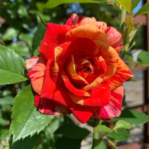 7月になり、緑の濃くなったベランダ🌿🌿🌿 ジジさんが一輪咲きました🌹✨😌