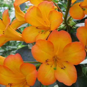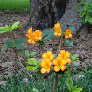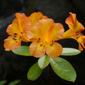 ロードデンドロン・ヴィレア‘シンブサンセット’ 和名:マレーシアシャクナゲ ツツジ科 常緑低木 熱帯アジア高山地帯原産 富山県花総合センター 展示温室にて トロピカルな雰囲気で、縁のオレンジが濃くなっている微妙な色合いが綺麗です💖
