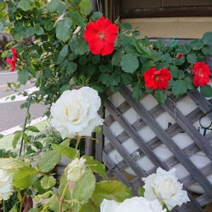 葉がな〜い。今日仕事から帰って久々に晴れたので庭に入って上に視線をやると、ロンサールのアーチに葉がない😅 本当に毎年バラにとって過酷な環境となってますね。 YouTubeの京阪園芸チャンネルで葉で見る夏場のあれこれが解説されてます。異常な気象状況ですから、葉がなくても恥ずかしい事ではありませんが、葉がない今後の育て方のアドバイスもありますよ。