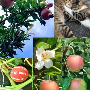 こんばんは お買い物途中のザクロの実が大きくなりました 今年は成り年だそうです 沢山のザクロを頂けるでしょうか 鉢植えのアルプス乙女に花が一輪咲きました 赤く色付き始めたりんごと花を一緒に収める事が出来ました 初めての行灯仕立てのオキナワスズメウリの実も一粒赤くなりました とても嬉しいです 4回目の冒険の旅に出ていたおてんばさんは今日帰って来ました 何時もお腹を空かせて痩せて帰って来ます ミィミィと沢山鳴いて、ご飯を沢山食べました 今日も見ていただきまして、ありがとうございました