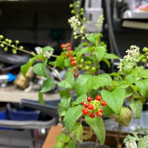 斑入りジュジュサンゴ ジュズサンゴ(Rivina humilis)の花言葉は「恋の痛み」「悲しい恋」 母のお庭の新入りさんです♪ 増えるといいな😊