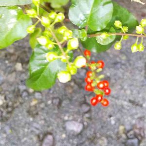 ジュジュサンゴの花が 咲きました。 💕💕 白い実 ◯、 赤い実 🔴、 どっちの実❓️🙄 付いてくれるかな どちらでも可愛いので 楽しみです。🎵🎵🎵