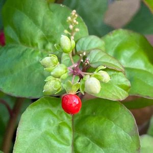 やっと晴れました☀️第二弾😁 昨年植えたジュズサンゴ❣️ ピカ✨プリ☄️の実と楚々とした花が当時にpicに収まる効率の良いコ😚 白い実のバニラさんも居るんだけど、まだお目見えで無い😔 零れ種で凄く増える、したたかな一面もあり🤭