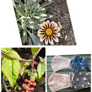 昨日のお友達のいえに咲いていたガザニアの色違い。この色も綺麗です。 手作りマスクもいただきました。 布製は呼吸がしやすくて私のようにマスク苦手でも着け安そうです。 お友達って有りがたいです。 赤い実はジュジュサンゴのようです。