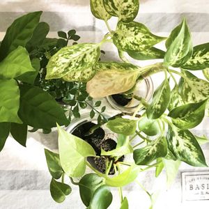 ポトスエンジョイからハマってしまいました🧡🤗 エンジョイの小ぶりな葉が可愛くて、ポトスに興味深々✨ そこから、ライム🍋🟩ゴールデン✨マーブルも気になって❣️ ずっと探して吟味して、ようやっとお迎え致しました🤗 多少、僅かにシミや穴はありますが、寄植えで出会えたので思い切ってお迎え🧡 緑も美しいし、軽やかな感じが素敵ですねー☺️ 疲れた👀も癒されます❣️