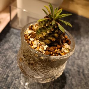 ユーフォルビア 峨眉丼 生長も一段落して、葉色が渋いブルーに変化してきました。 冬の落葉前には紅葉もするので、結構年中楽しめます。